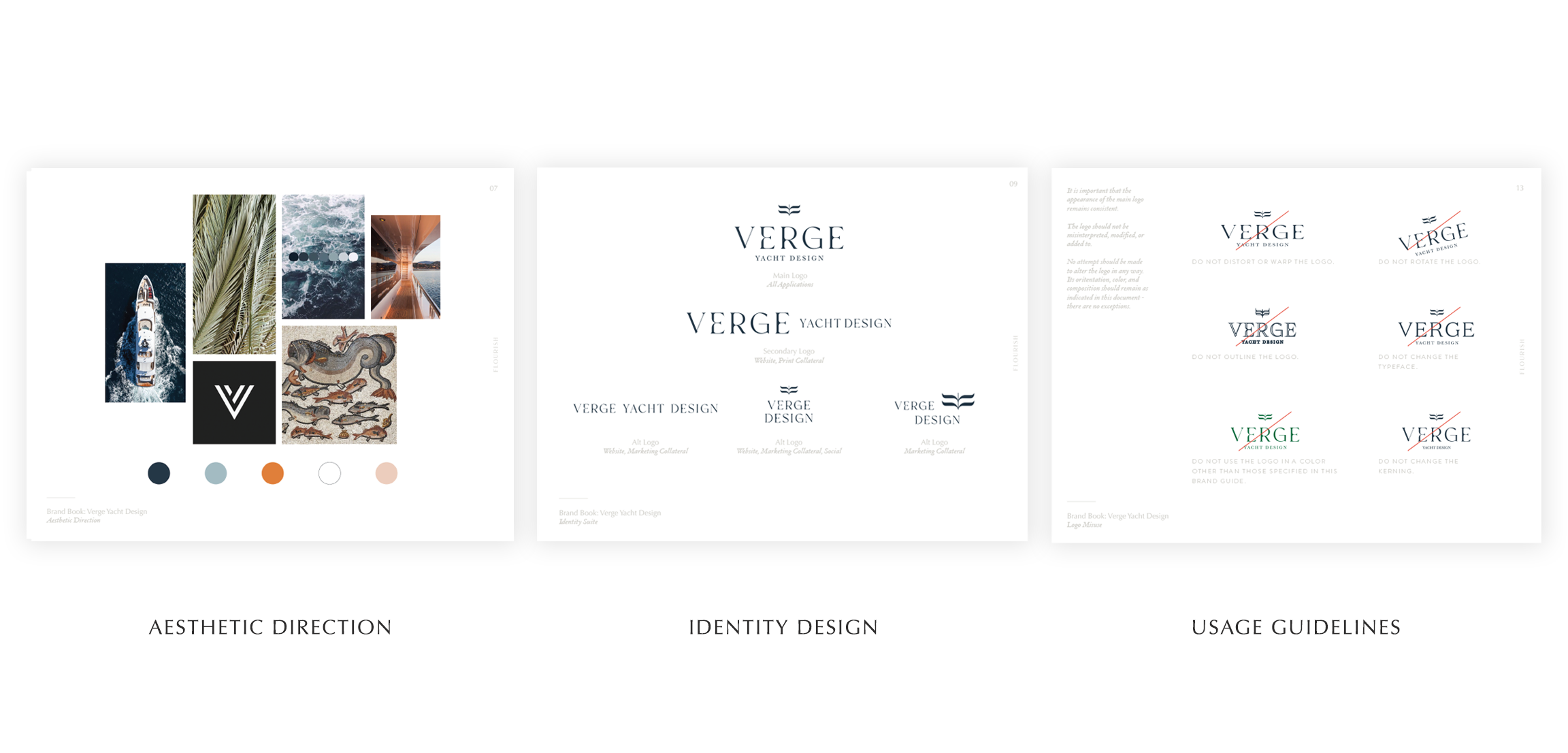 Once we solidify the internal messaging – the “inside” of your brand and how it functions as a persona – we then move on to the “outside”; that is, the brand identity. Our brand process includes the following assets:
